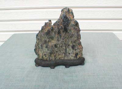 で、持ち込みも古く、剣山型のとても素晴らしい石です。台は、素人作りです。